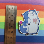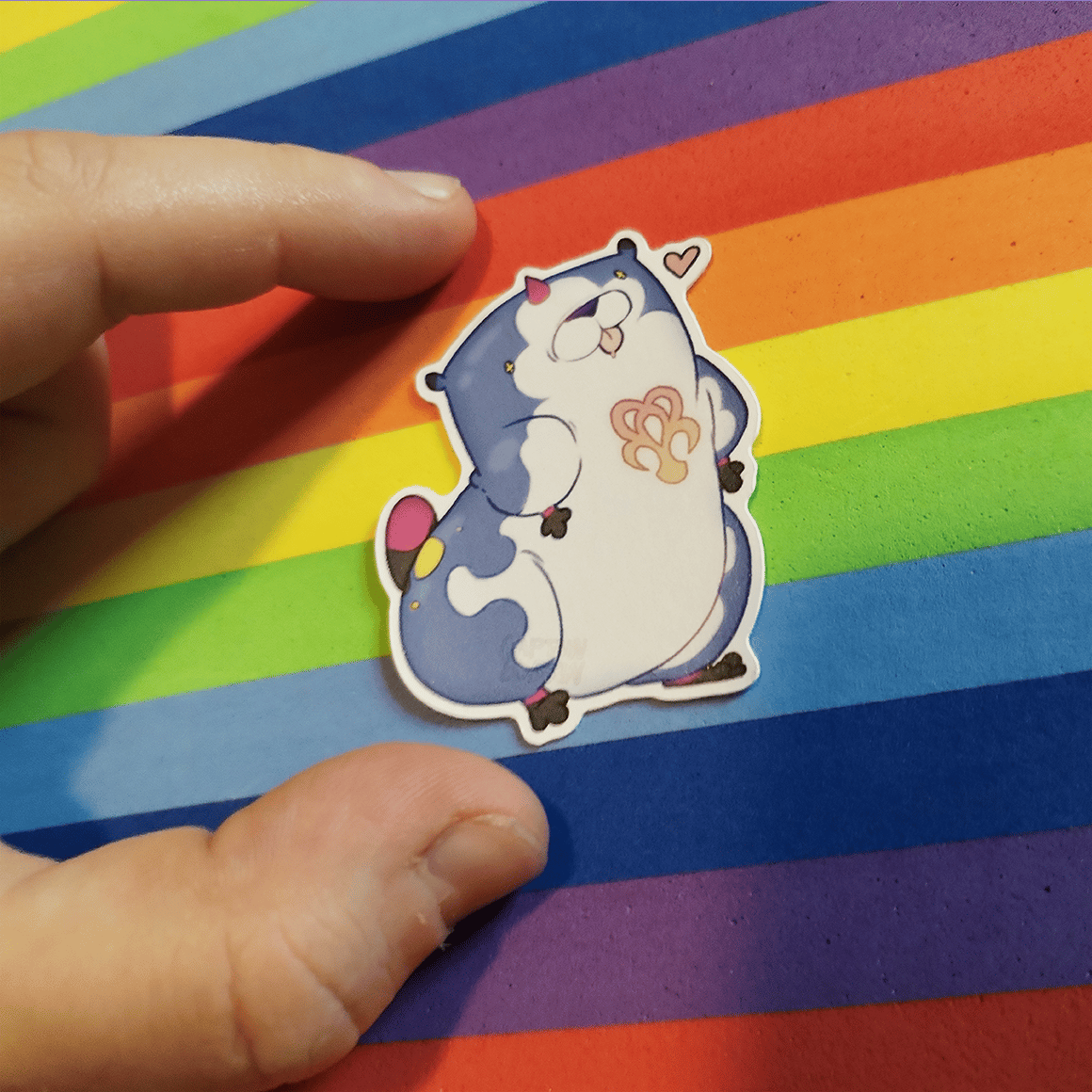 This mini version sticker is approximately 5x5cm, is waterproof, and has a matte finish.