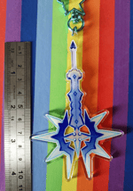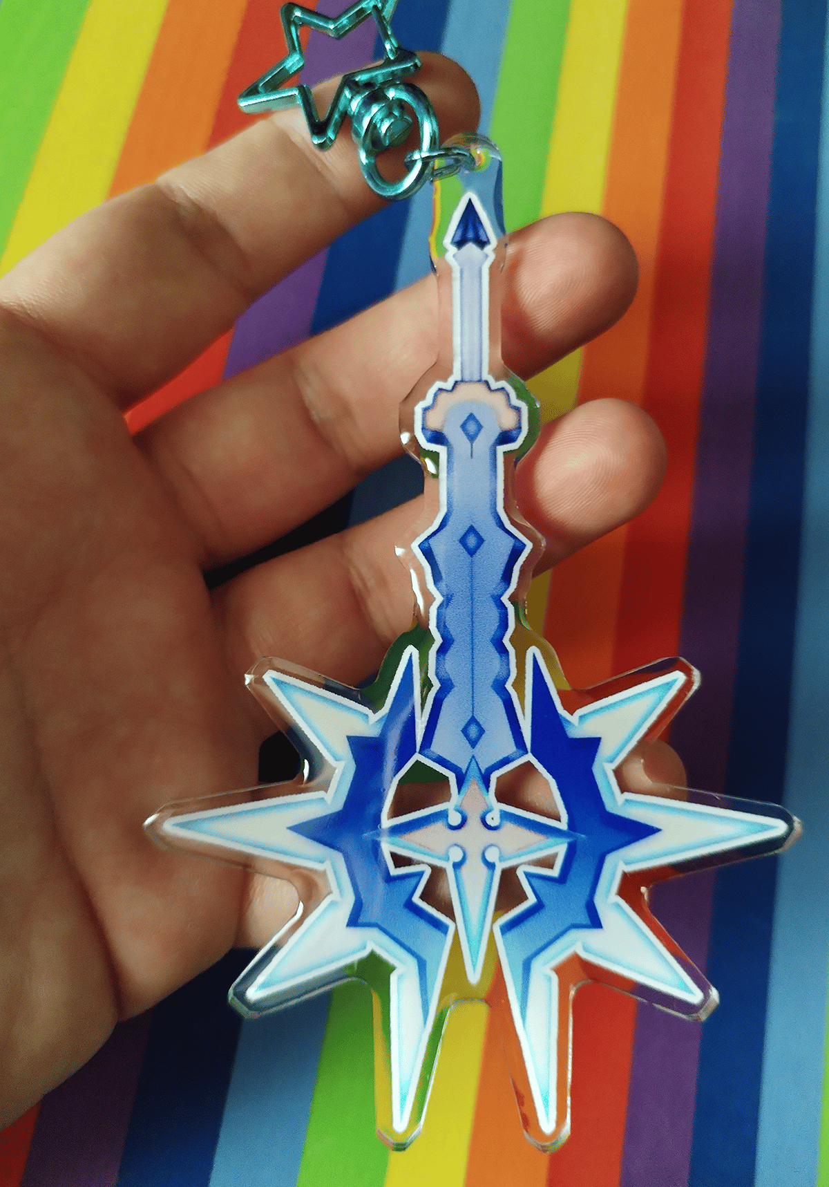 double sided acrylic charm made from two layers of recycled 2mm clear acrylic, with a resin dome on one side - blue star shaped keyclasp attached!