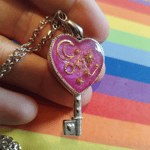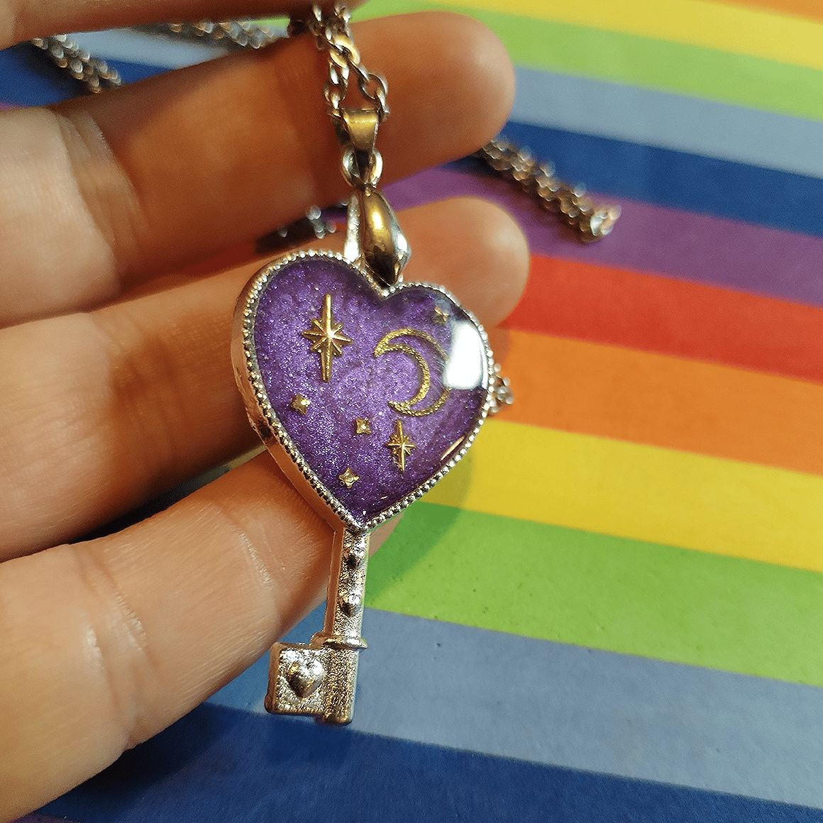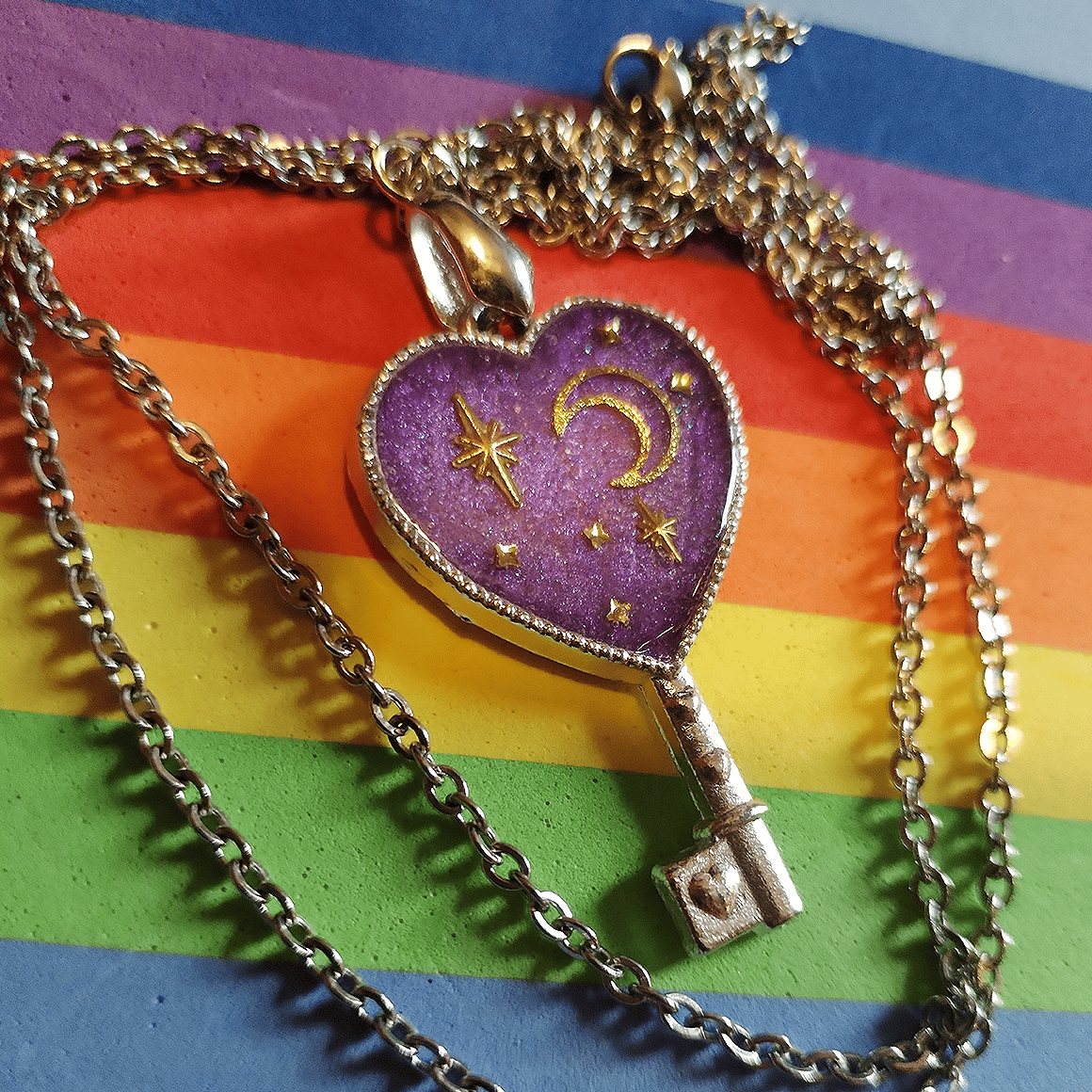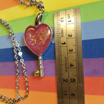 These resin charms comes affixed to a stainless steel chain. They have a silver flake effect on their backs.